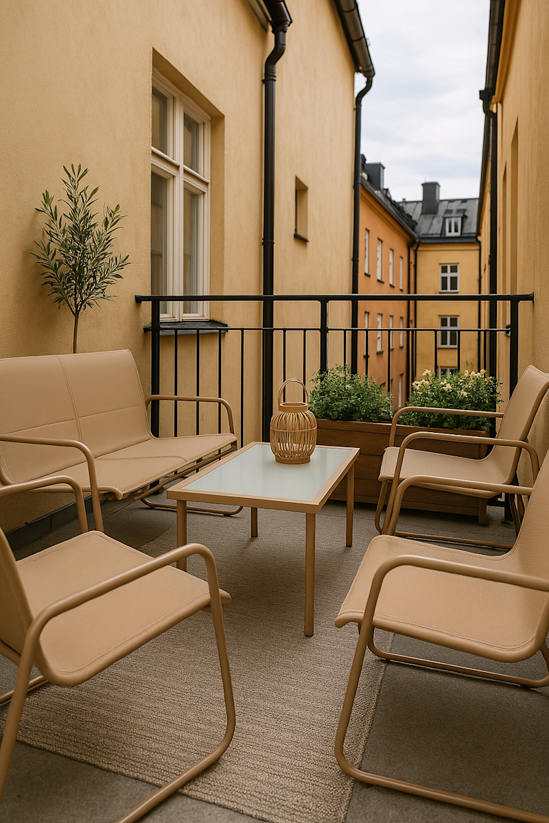 Snygga möbler till en långmal balkong