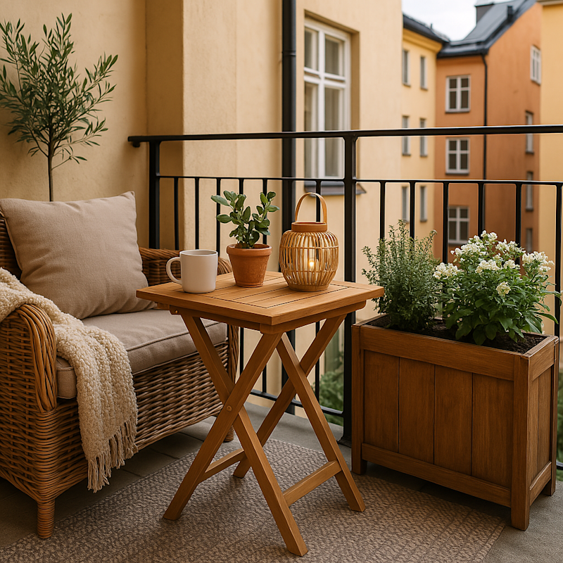När ytan är begränsad gäller det att tänka effektivt. Välj gärna möbler som kan fällas ihop eller staplas när de inte används. Det finns smarta Balkongbord som du exempelvis kan hänga över balkongräcket för att spara plats. Sittdynor, mjuka filtar och mindre växter i amplar eller blomlådor gör det enkelt att få till en mysig känsla.