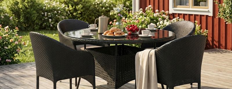 Välj och vraka bland utemöbler i flera olika stilar! Rottingmöbler för altanen? Teak eller Nonwood till balkongen? Hitta det som passar bäst i ditt hem! Vi kan framför allt rekommendera våra populära trädgårdsmöbler i genomfärgad konstrotting som håller mycket hög kvalité. Deras stomme av aluminium gör att de kan förvaras utomhus, sommar som vinter.