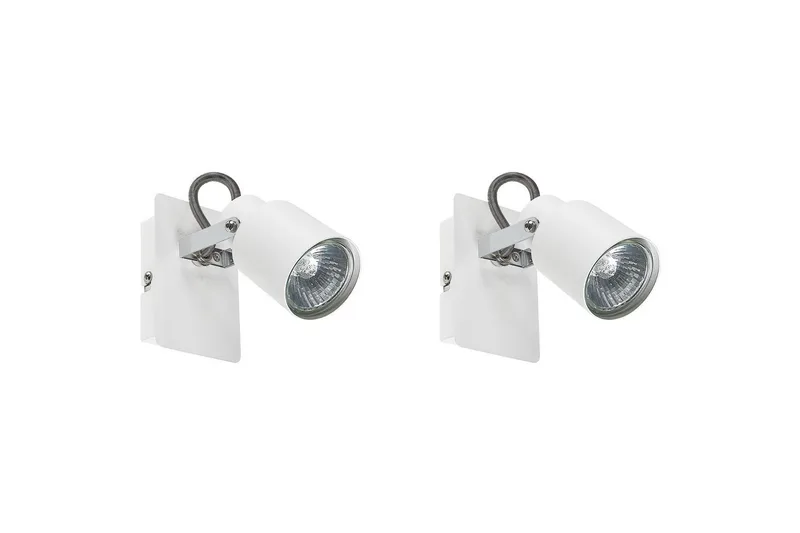 Set med 2 väggspotlights. Denna uppsättning väggspotlights kommer att se bra ut i ditt vardagsrum eller i en hall, berika omgivningen med sin moderna design och belysa den med varmt ljus. Delarna är justerbara, så att du kan använda dem som arbetslampor, och de är gjorda av slitstarkt järn, och är underhållsfria. Deras vita färg gör att de sticker ut och passar in i moderna inredningsstilar.