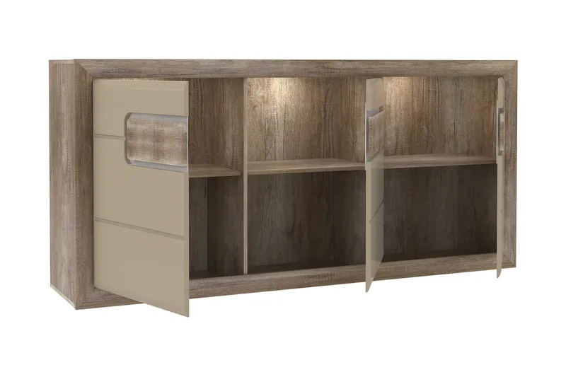 En av de unika funktionerna i detta sideboard är dess inbyggda belysning, vilket skapar en mysig och stämningsfull atmosfär i rummet. Dessutom är detta sideboard certifierat av FSC, vilket garanterar att träet kommer från hållbart skogsbruk.