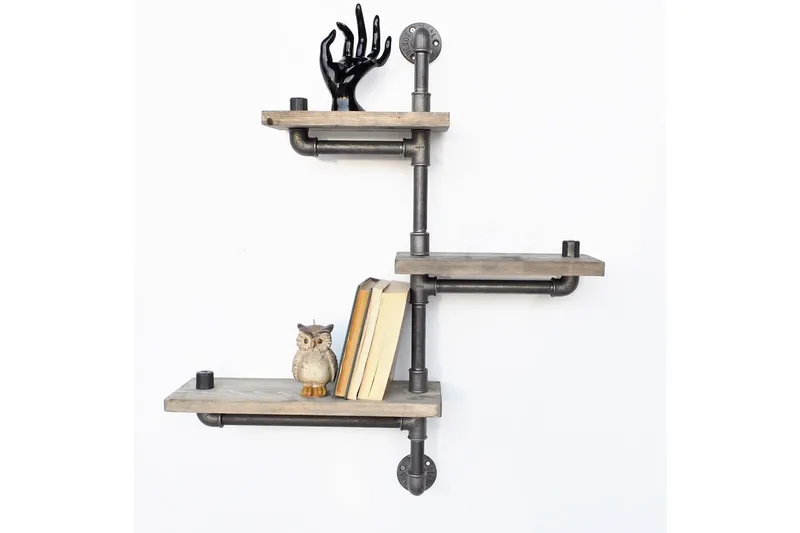 Evila Vägghylla Rör/Trä 3 Hyllor Svart/Trä