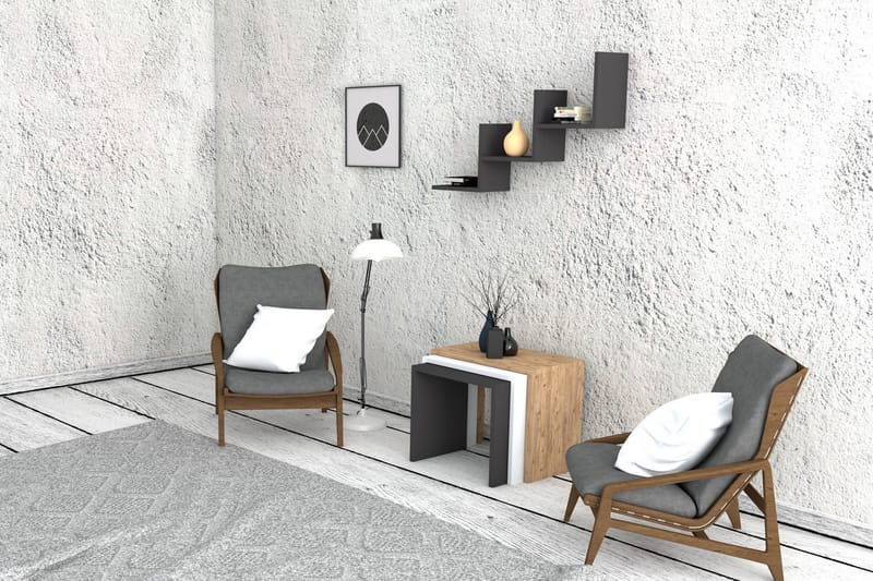 Hyllan är tillverkad av melaminbelagd spånskiva, vilket ger den en hållbar och slitstark yta. Den grå färgen ger hyllan en elegant och modern touch som passar in i alla inredningsstilar.