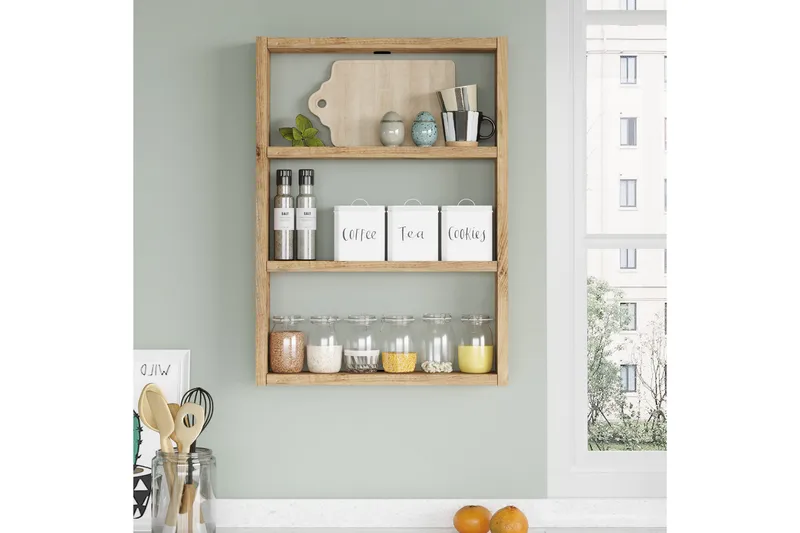 Med sina generösa mått på 43,2 cm i bredd, 60 cm i höjd och 9 cm i djup, erbjuder Rinorea Vägghylla gott om plats för att visa upp dina favoritföremål eller förvara böcker, dekorationer och andra vardagsprylar.