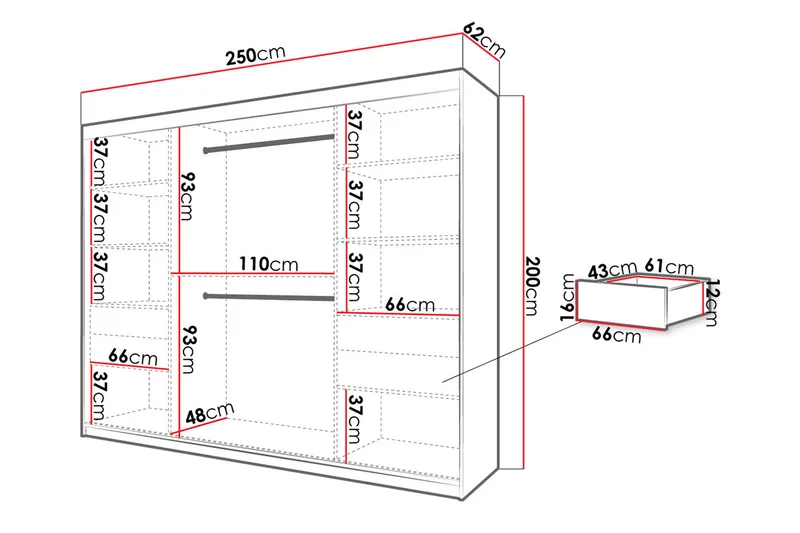 Garderob 250 Svart|Natur