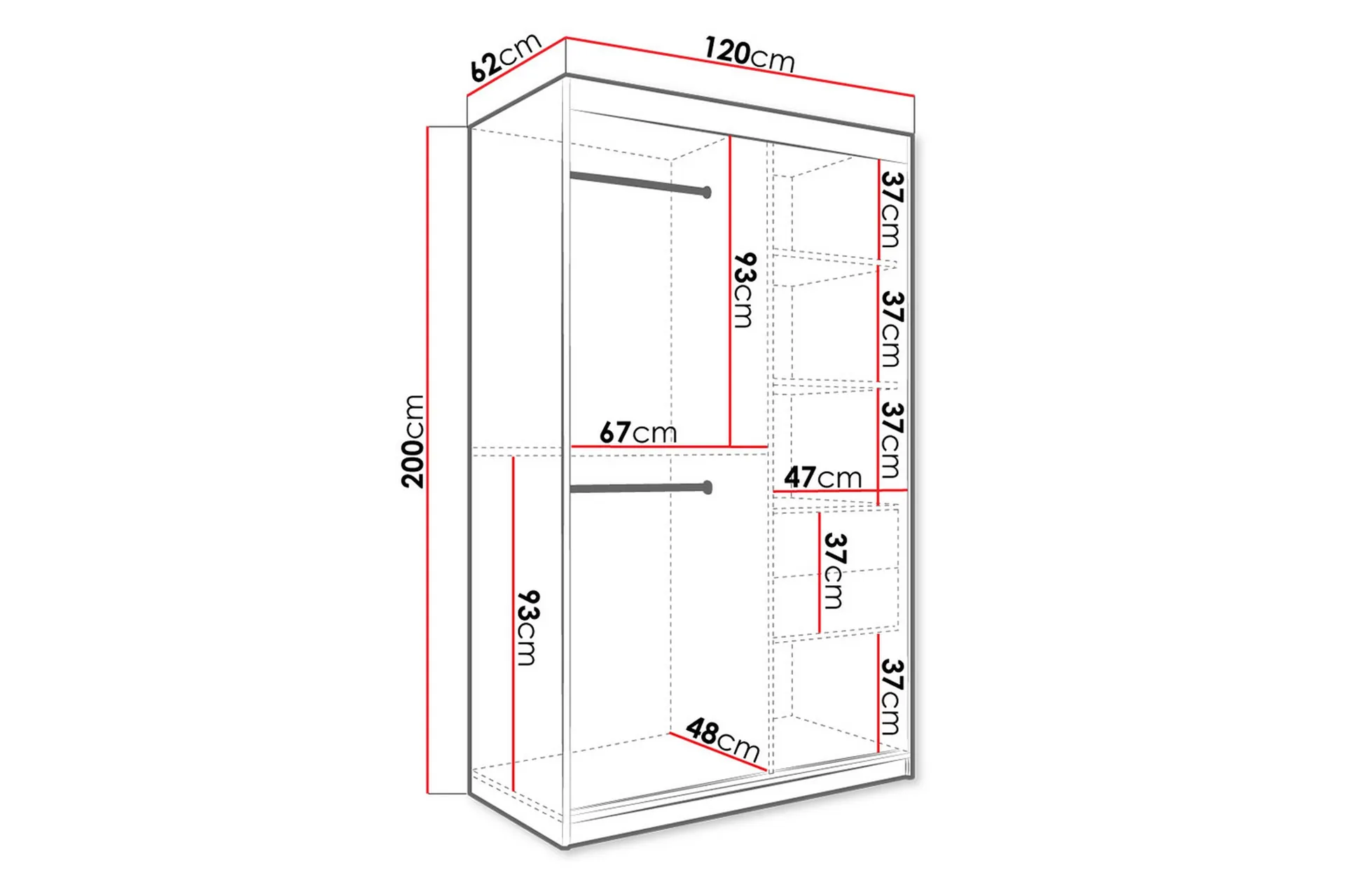 • Mått: B:120 cm H:200 cm D:62 cm