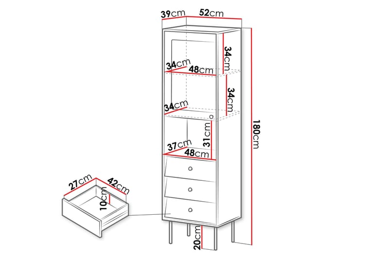- Mått: B:52 cm H:180 cm D:39 cm