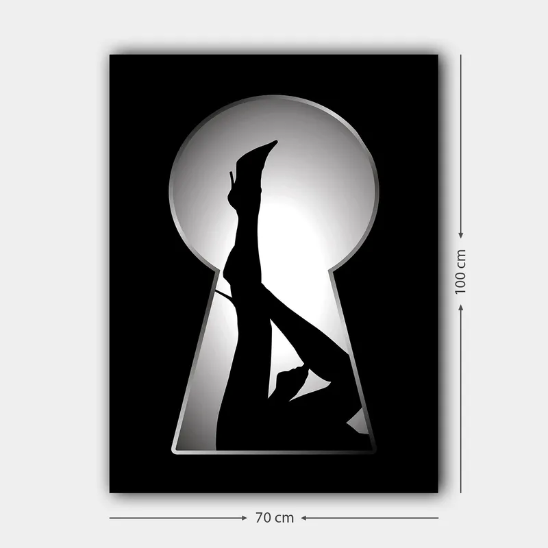 Canvastavla 70x100 cm - Silhuetten av en kvinna i högklackade skor genom ett nyckelhål Svart / Vitt