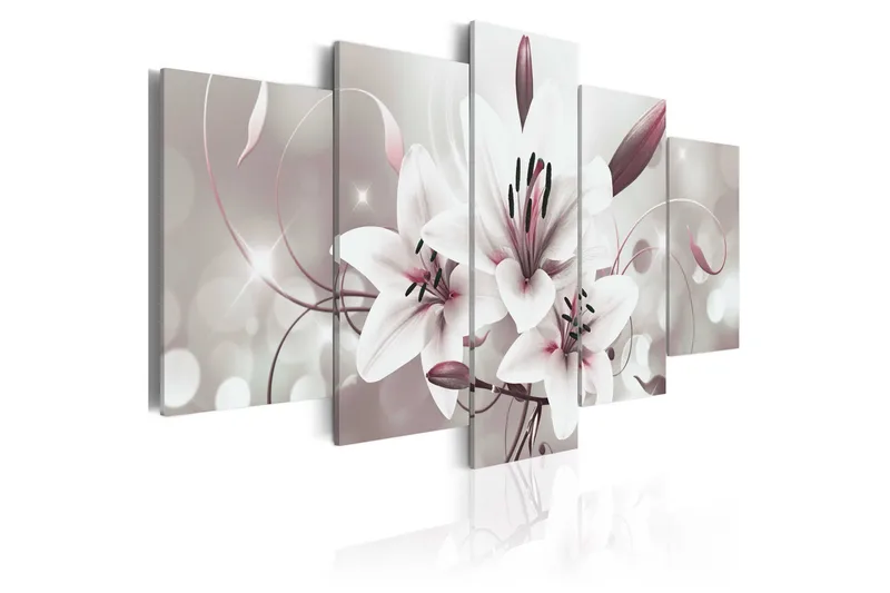 Stor Canvastavla i 5 delar 105x70 cm - Sensuell kvinna som vilar på en säng med blommor i närheten