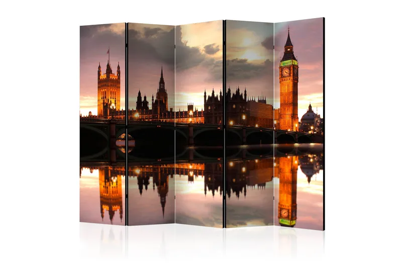 Canvastavla med LED-belysning - Solnedgång över stilla vatten med paddlare i horisonten