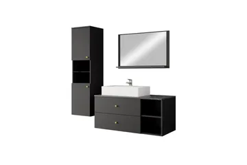Badrumspaket | Kommod 90 cm | Sidoskåp & LED-spegel | Grå