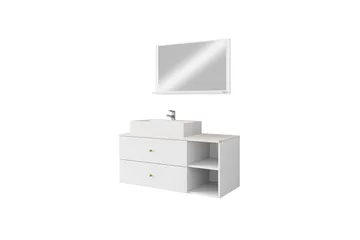 Badrumspaket | Kommod 101cm | Rund LED-spegel | Tuba - Vit