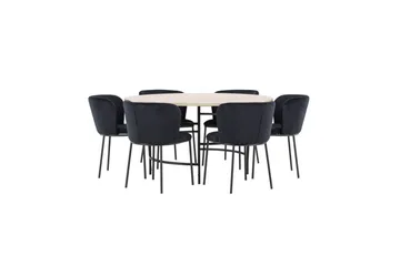 Matgrupp Strada Runt 120/170 cm Svart med Lilja Stolar 6 st