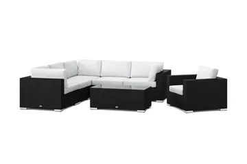 Bahamas utomhus L-soffa höger 8-sits med fåtölj och bord med hylla
