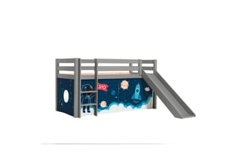 Halvhög Säng med gardin och rutschkana Pino Grå, Rymdfärja