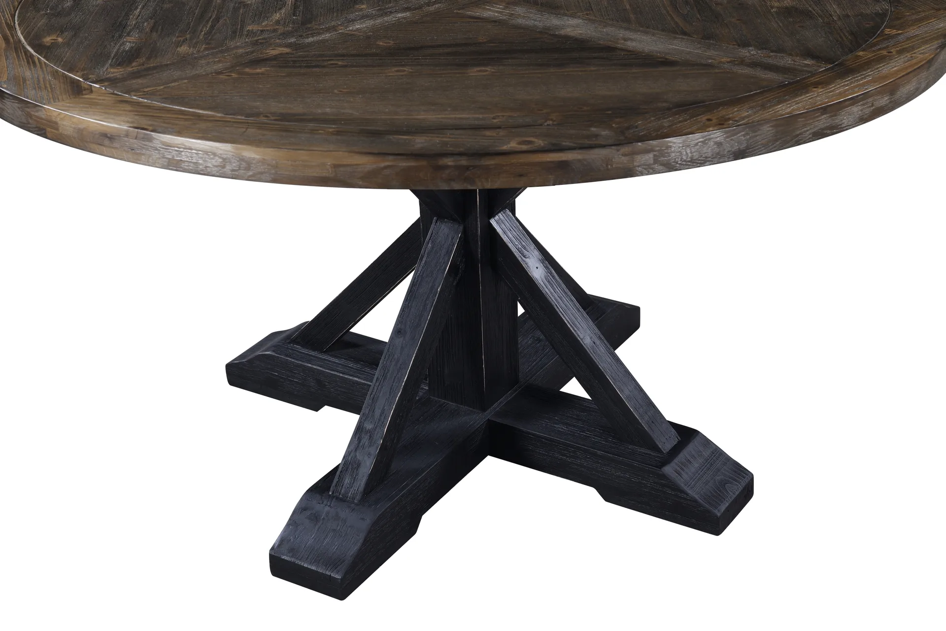 Detta matbord är tillverkat av massivt granträ och furu, vilket ger det en robust och hållbar konstruktion. Bordsskivan har en vacker mörkbrun färg som ger en varm och inbjudande känsla till rummet. Benen är i svart färg, vilket ger en elegant kontrast till bordsskivan.