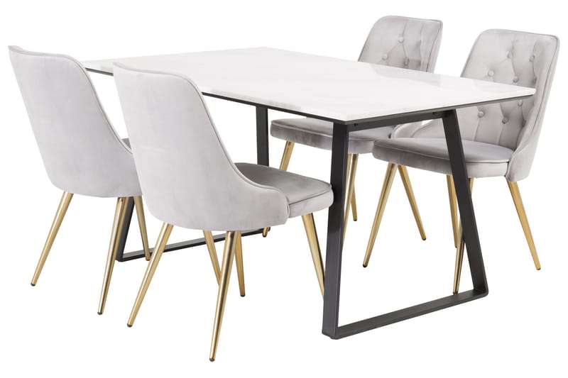 Venture Home Estelle Matgrupp 140 cm Rektangulär med 4 Velvet stolar Svart/Guld