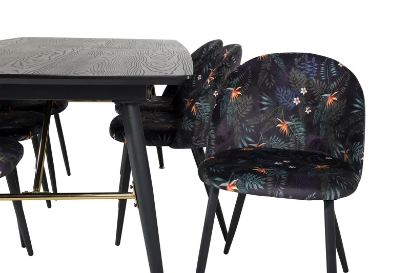 Venture Home Gold Matgrupp Förlängningsbar 180-220 cm Rektangulär med 6 Velvet stolar Svart/Guld