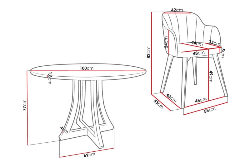 Bordet är tillverkat i högkvalitativt material och har en diameter på 100 cm, vilket ger gott om utrymme för mat och tallrikar. Stolarna har en bekväm sits och ryggstöd för optimal komfort under långa middagar.