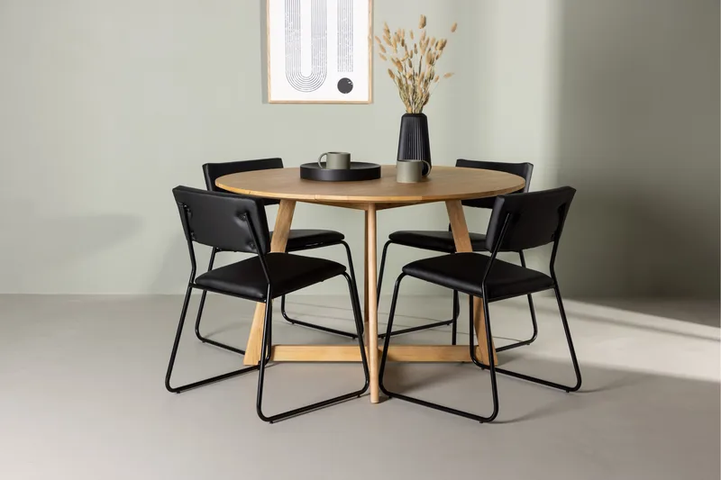 Venture Home Kenth Matgrupp 120 cm Rund med 4 Kenth Stolar Svart