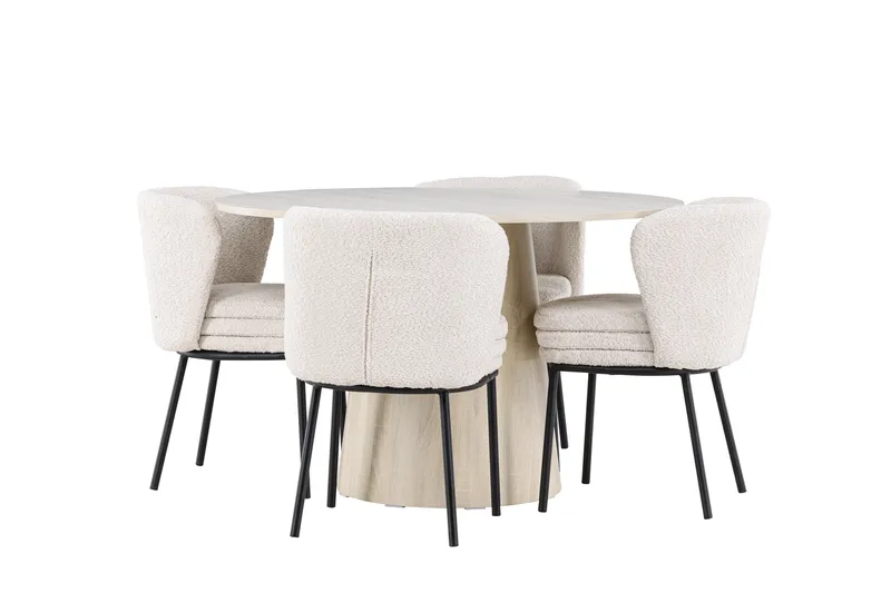 Venture Home Lanzo Matgrupp 120 cm Rund med 4 Agnes stolar Whitewash/Vit