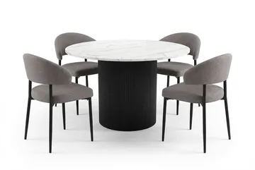 Uppveda Matbord 120 cm Runt Svart med 4 Sawako Greige Stolar
