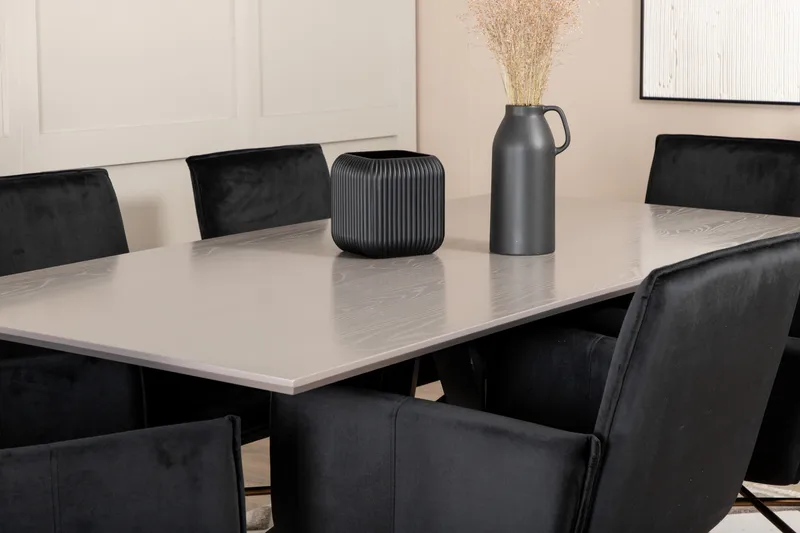 Venture Home Penny Matgrupp 190 cm inkl 6 Pipi Stolar Grå/Svart/Koppar