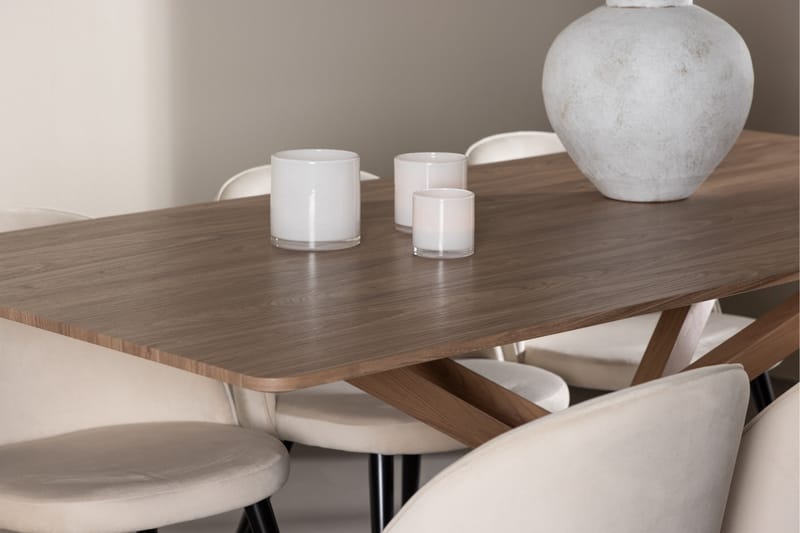 Venture Home Piazza Matgrupp 180 cm Rektangulär med 6 Velvet stolar Mocca/Beige