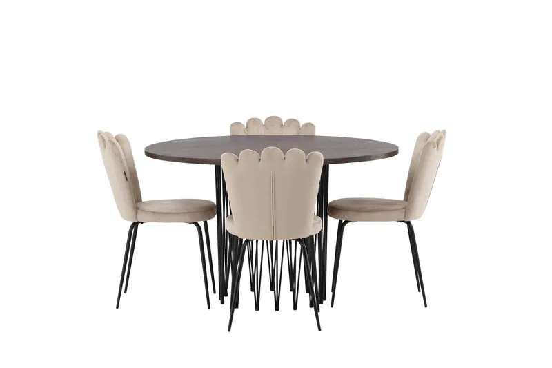 Venture Home Stone Matgrupp 120 cm Rund med 4 Limhamn stolar Beige
