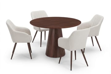 Siena Matgrupp runt 110 cm Valnöt med 4 Filippa Matstolar