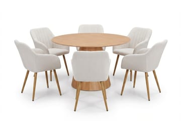 Siena Matgrupp runt 130 cm Ek med 6 Nibe Matstolar