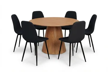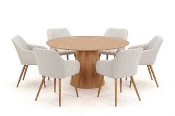 Siena Matgrupp runt 130 cm Ek med 6 Build Matstolar