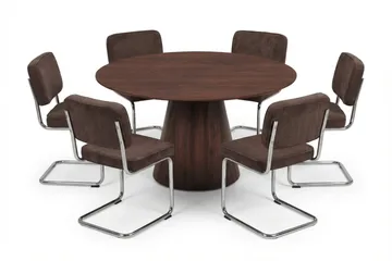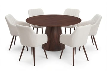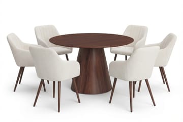 Siena Matgrupp runt 130 cm Valnöt med 6 Nala Matstolar