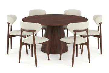 Siena Matgrupp runt 150 cm Valnöt med 6 Molly Matstolar