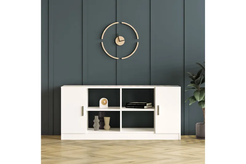 Möbelsetet har en vit färg som ger en modern och fräsch känsla till rummet. Det är tillverkat av melamin och spånskiva, vilket ger en hållbar och robust konstruktion. Bordets rektangulära form ger gott om utrymme för att arbeta och organisera dina saker.