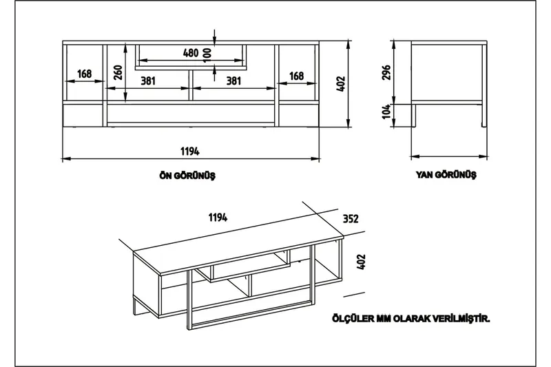 Denna TV-bänk är tillverkad av 100% melaminbelagd spånskiva och har en tjocklek på 18 mm, vilket gör den stabil och hållbar. Dessutom levereras den med tre stycken nesting-bord som kan användas som extra förvaring eller som avlastningsbord för dina drycker och snacks.