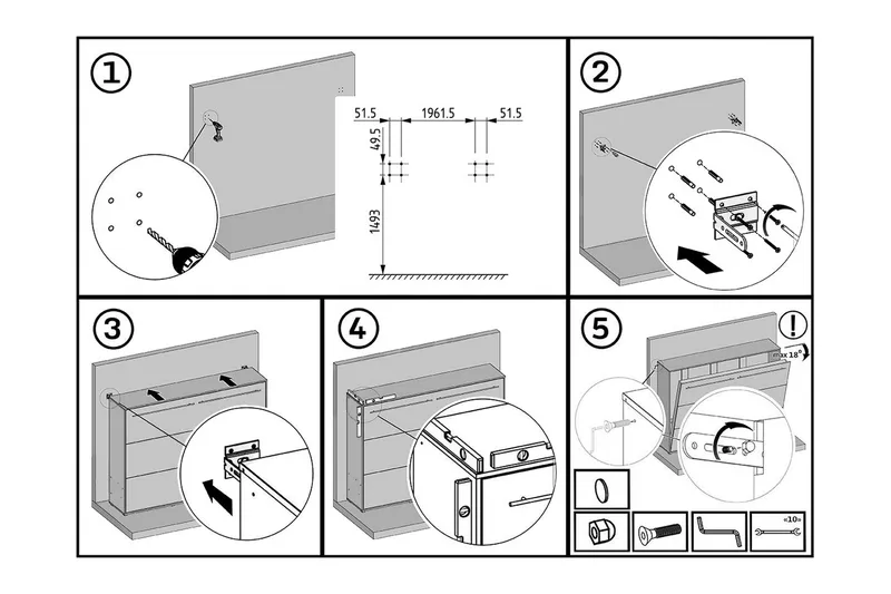 Sängarna ska monteras i väggen, direkt på en fast struktur som tegel, betong eller fast timmerstomme. Sängskåpen får inte fästas på en gipsskiva eller liknande om det inte finns en fast struktur undertill. Monteringstillbehör ingår. För att montera sängskåpet krävs två personer.
