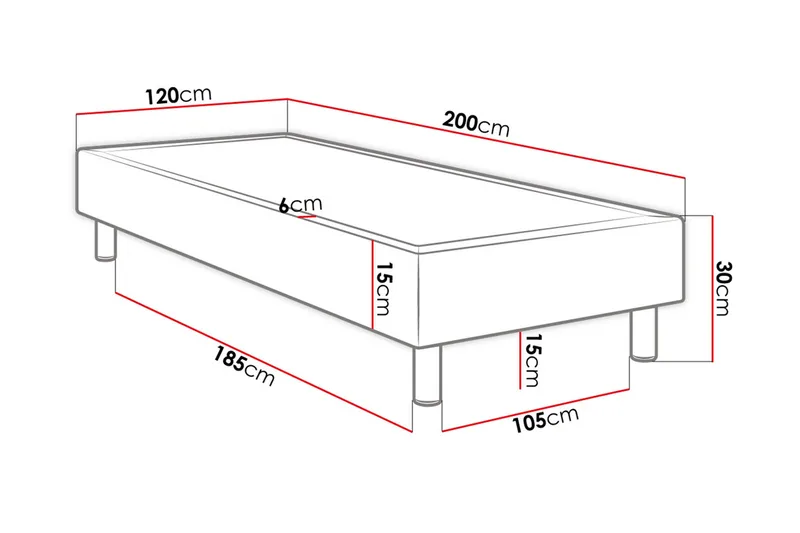 Med sina mått på 80x200 cm är denna säng perfekt för mindre sovrum eller som en gästsäng. Den har en höjd på 30 cm, vilket ger en bekväm instigningshöjd.