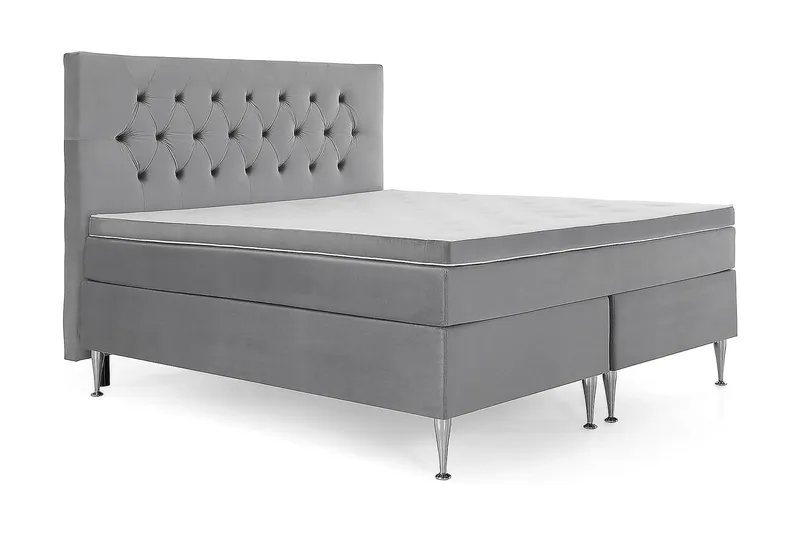 Berg & Strand Royal Velvet Komplett Sängpaket 180x200 cm Ljusgrå med Höga Silverben