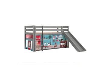 Halvhög Säng med gardin och rutschkana Pino Grå, Husdjursaffär