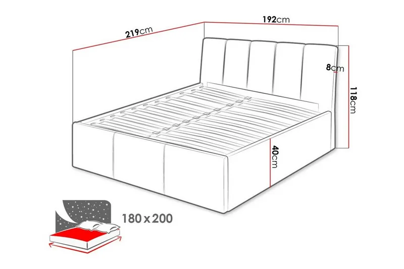 - Mått: B:192 cm L:219 cm H:118 cm D:192 cm