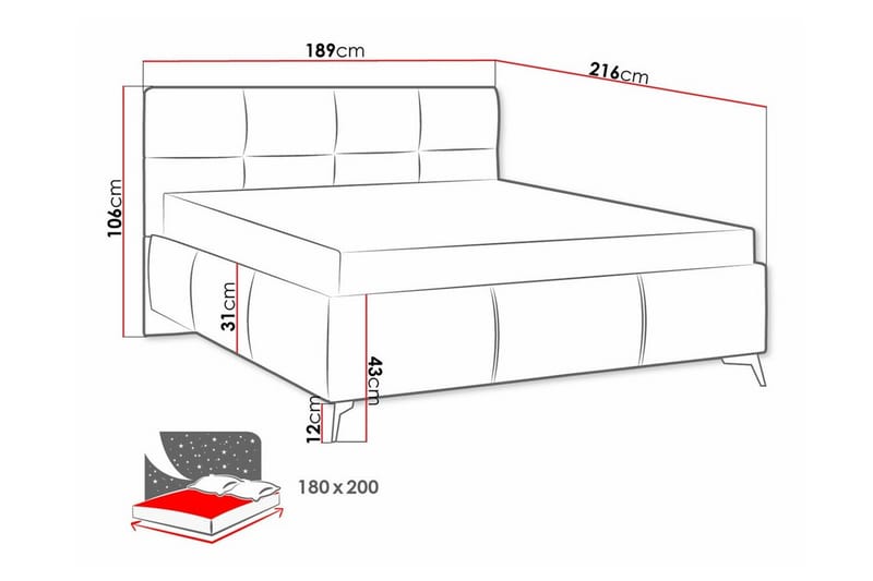 - Bäddmått: 180x200