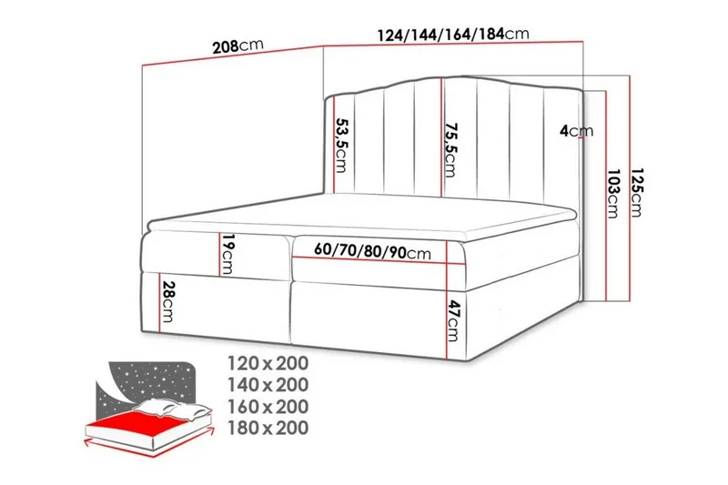 - Mått: B:164 cm L:208 cm H:125 cm D:125 cm