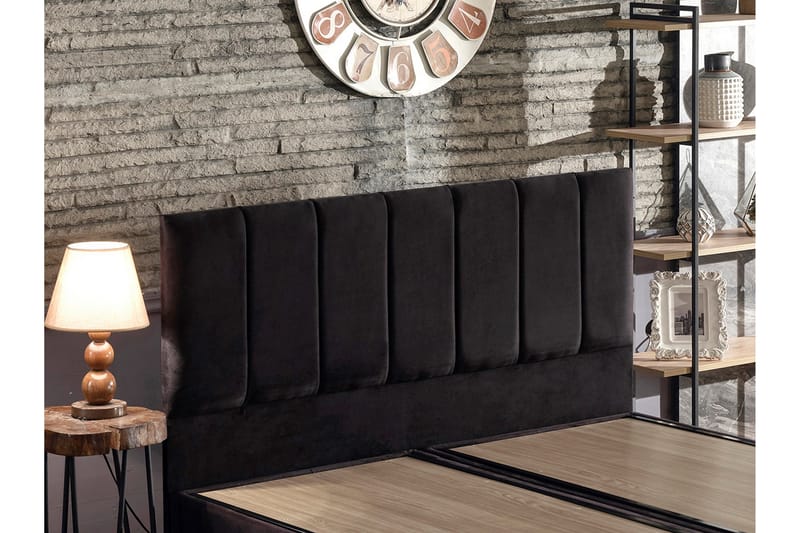 Denna eleganta sängram är perfekt för att skapa en stilfull och bekväm sovplats i ditt hem. Med sin svarta färg och rak form passar den in i de flesta inredningsstilar.