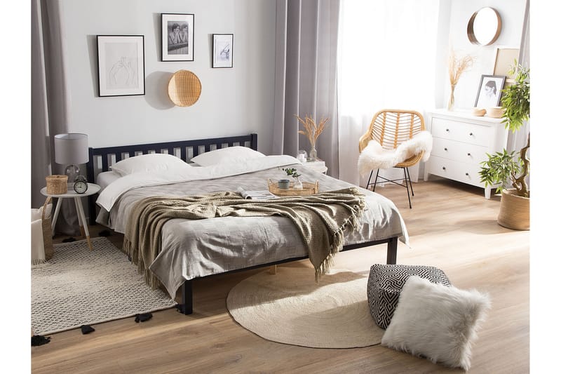 Bekväm dubbelsäng. Få en bra sömn och skapa en elegant stämning i ditt sovrum med denna säng. Tack vare den enkla designen blir sängen ett perfekt komplement till alla typer av interiörer: traditionell, modern eller industriell. Sängramen är gjord av trä som är mycket hållbart och lätt att underhålla. Det hjälper dig att slappna av och hitta den bästa sovpositionen.