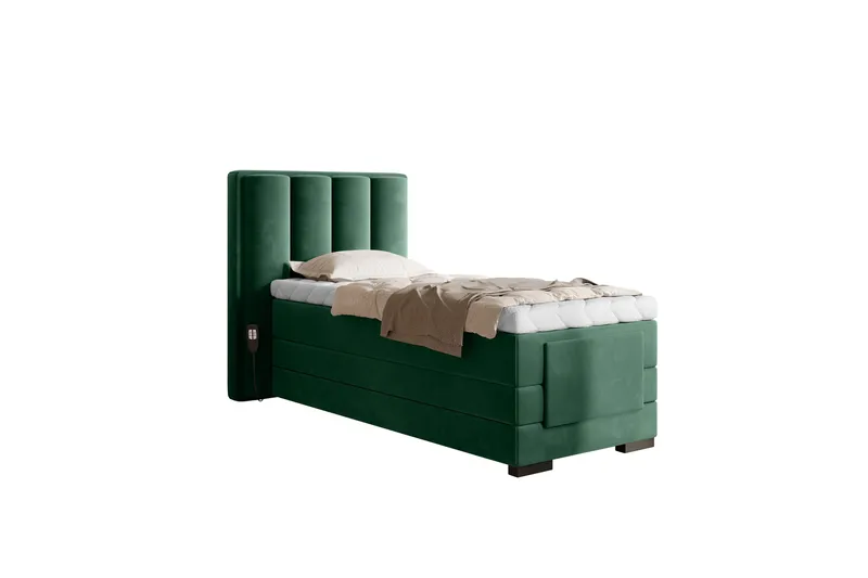 Denna ställbara kontinentalsäng i storleken 90x200 cm är både bekväm och stilfull. Med sin gröna färg och sammetstextur ger den en lyxig känsla till ditt sovrum.