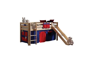 Halvhög Säng med gardin och rutschkana Pino Naturlig, Domino
