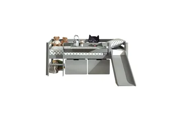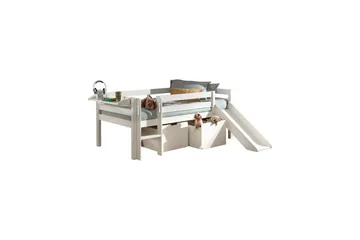 Mellanhög säng med rutschkana Pino Vit, 85 cm