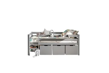 Halvhög Säng med gardin Pino Vit, Domino