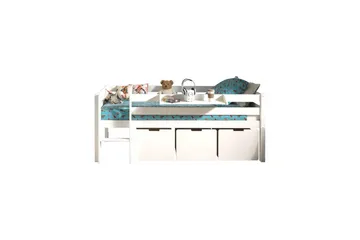 Mellanhög säng med stege och lådor Pino Vit, Set om 3, Med hänghylla